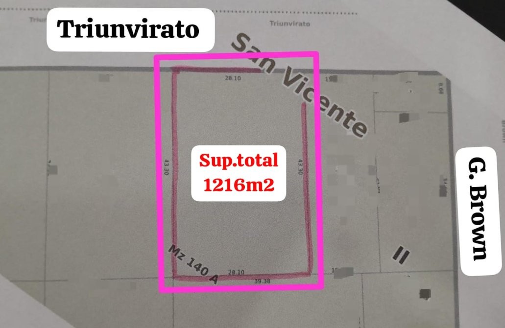 Medidas: 28,10 mts de Frente x 43,30 mts de Fondo